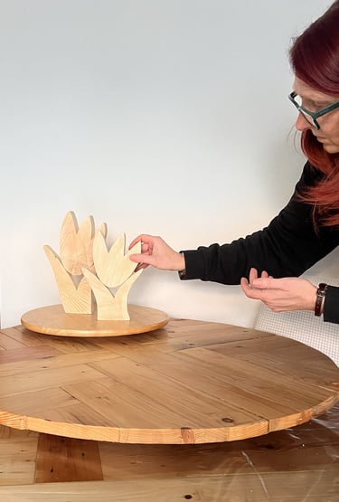 Hallo! Schön, dass du da bist. Ich bin das Gesicht hinter Efeuliebe – deinem kleinen Herzensprojekt für handgemachte Holzdekoration und Schmuck.